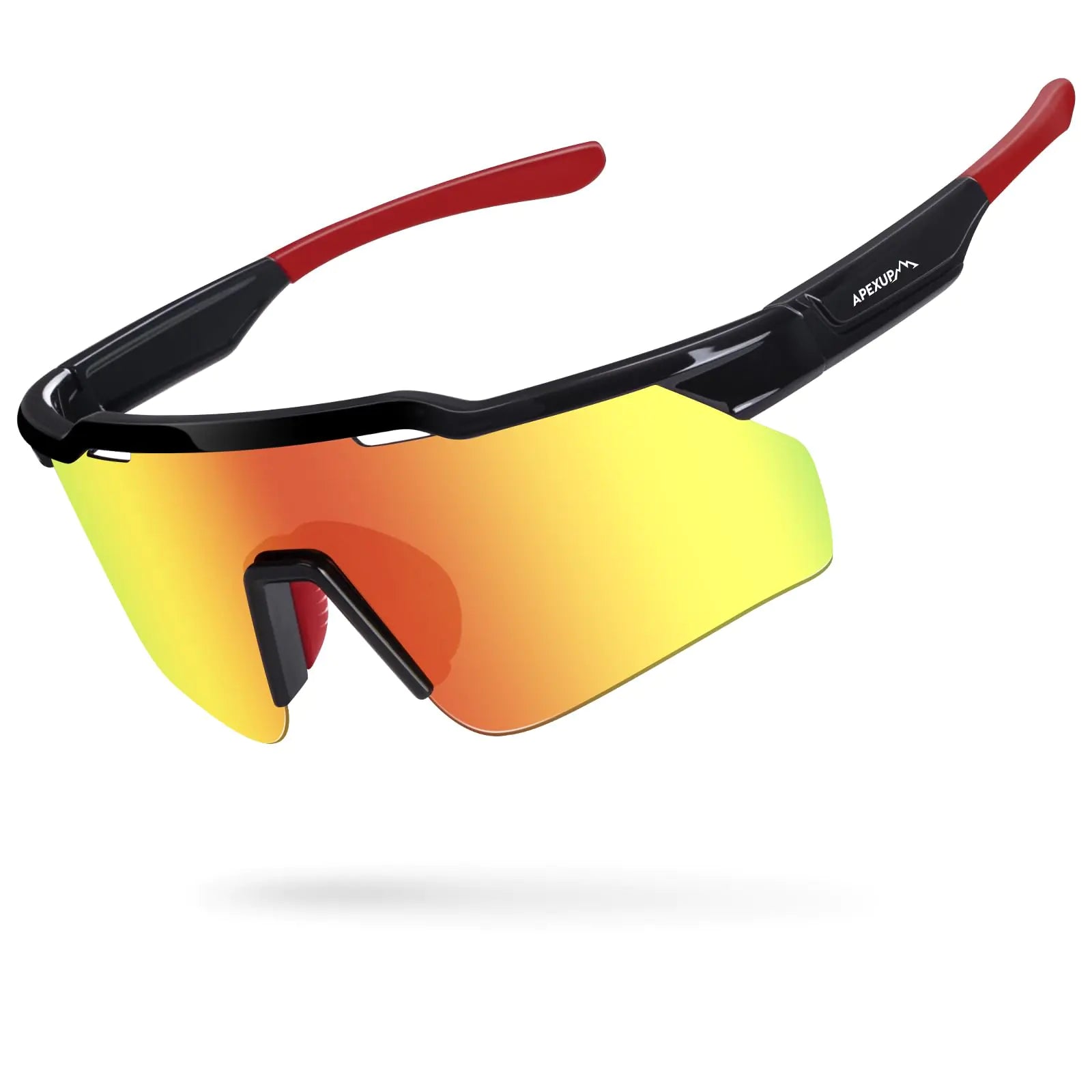 APEXUP Sports Polarized Sunglasses offer superior UV400 protection for both men and women, making them perfect for outdoor activities such as cycling and fishing. Their polarized lenses reduce glare and increase visibility, providing a safer and more comfortable experience. The stylish red frames are an added bonus to their practical functionality.