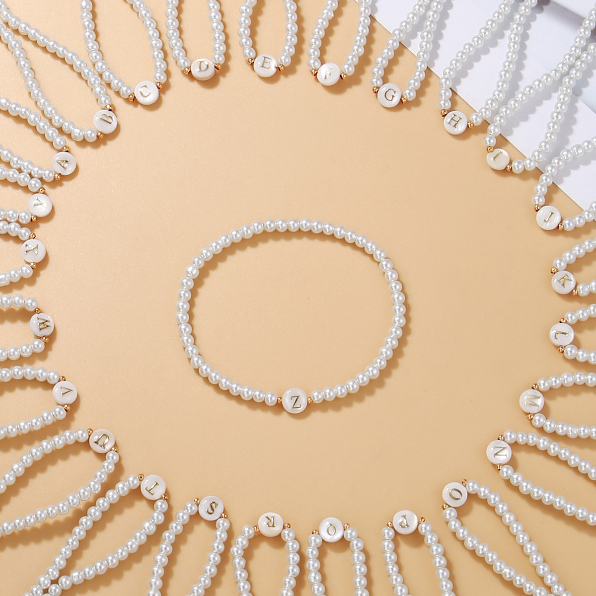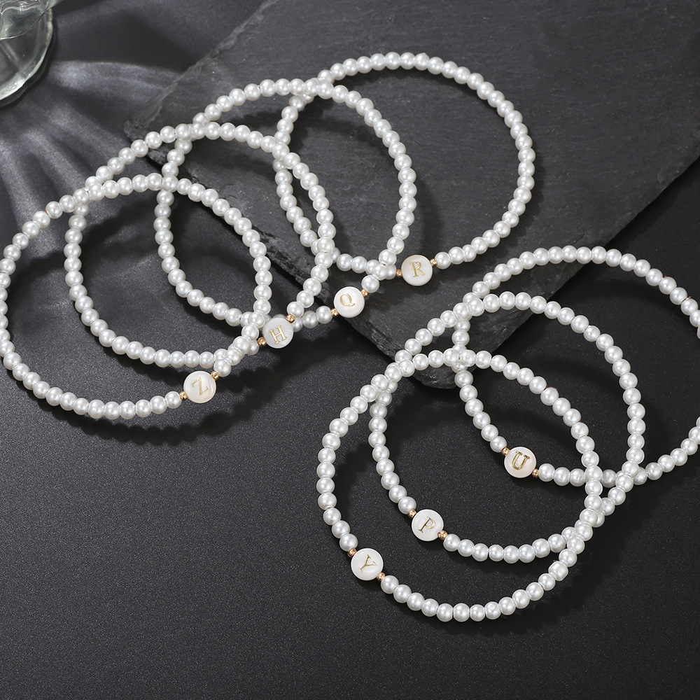 Dainty Faux Pearl Bead Initial Bracelet for Women